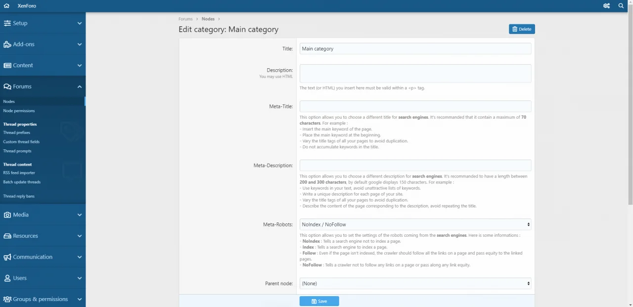 - User : Can edit SEO for own entity (threads, resources and media)