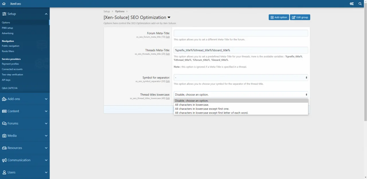 - User : Can edit SEO for all threads